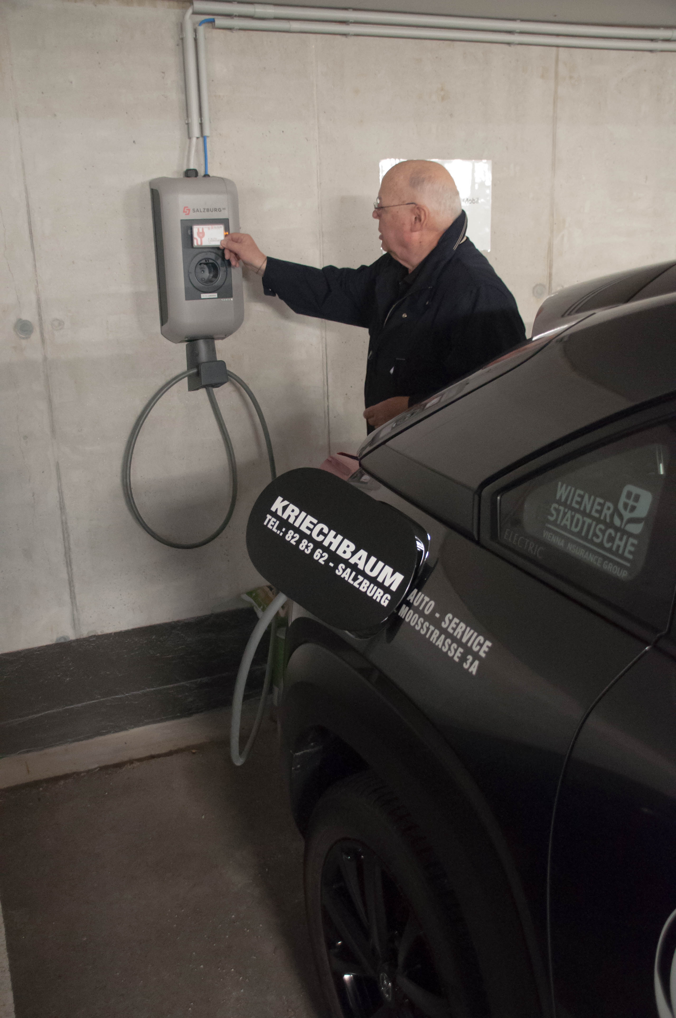 Nach jeder Fahrt ist das Auto an die Wallbox zum Aufladen anzuhängen